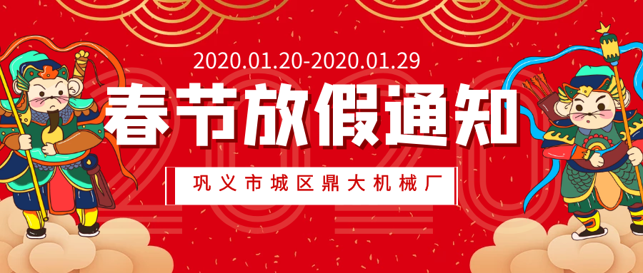 金豬搖尾辭舊歲,玉鼠探頭迎新年。在這里,鼎大雙齒輥破碎機廠家給大家拜個早年,感謝朋友們一直以來對我們鞏義市城區鼎大機械廠的支持與厚愛,恭祝大家在2020年里身體健康,工作順利,闔家幸福,萬事如意! 展望未來,鼎大希望與您一起攜手共創美好明天。