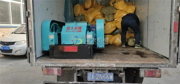 生石灰用雙齒輥破碎機破碎試機現場