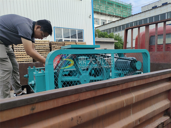 [2023-04-17]生石灰用雙齒輥破碎機(jī)破碎試機(jī)現(xiàn)場(chǎng)